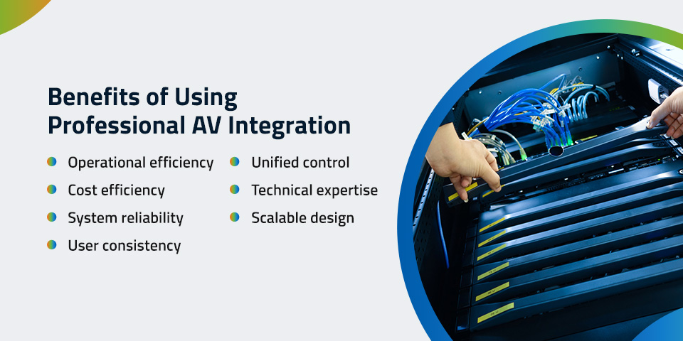 - User consistency: A well-integrated AV system will have an intuitive interface with less of a learning curve for personnel.